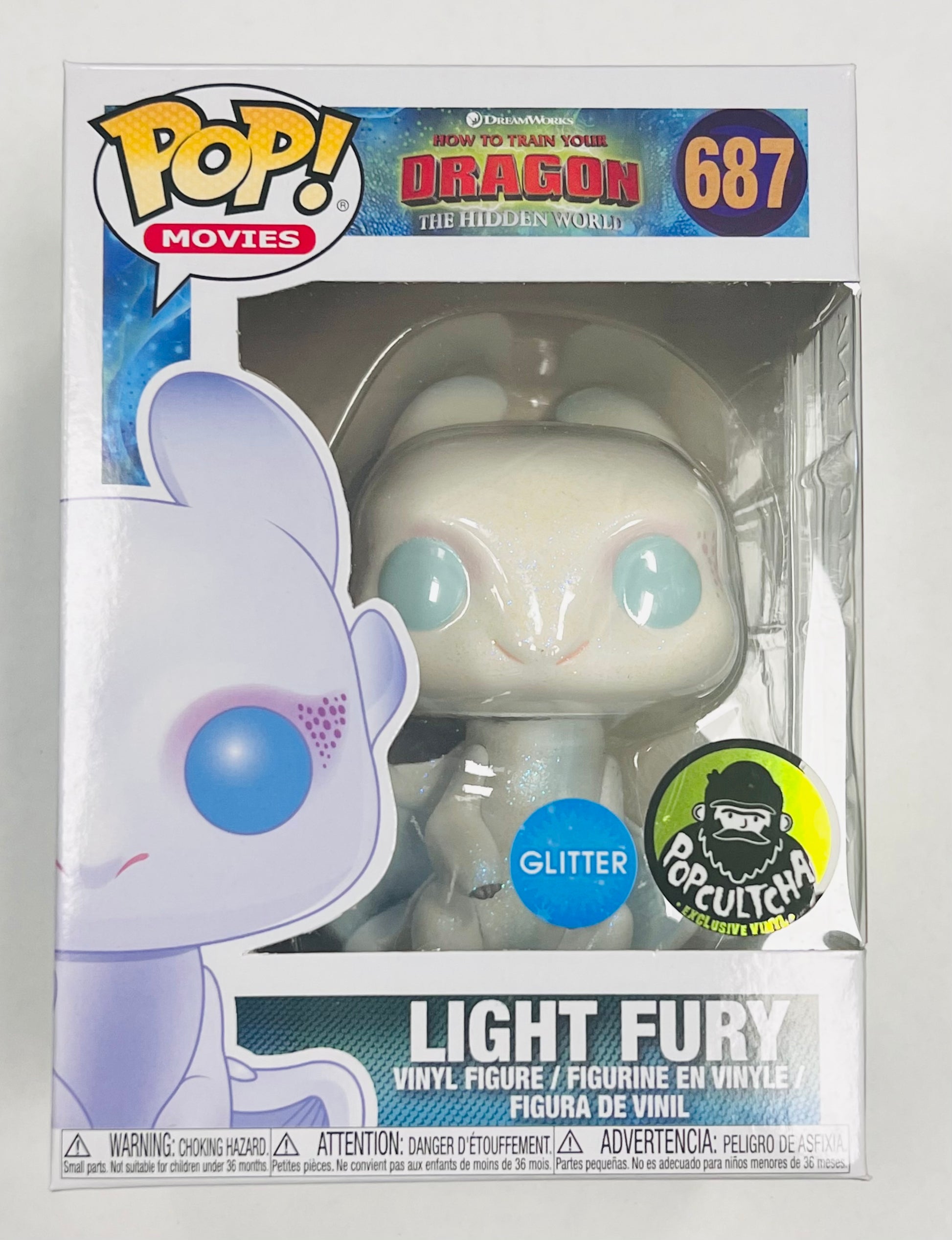 Funko Pop! DreamWorks How To Train Your Dragon The Hidden World - Light Fury 687 Glitter Popcultcha Exclusive + Free Protector