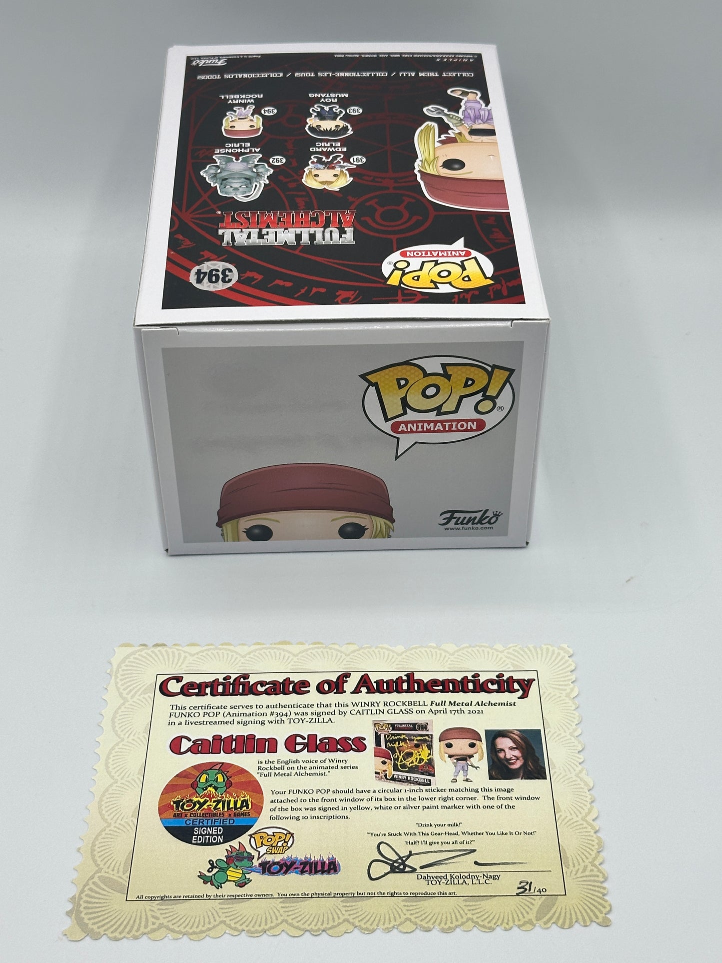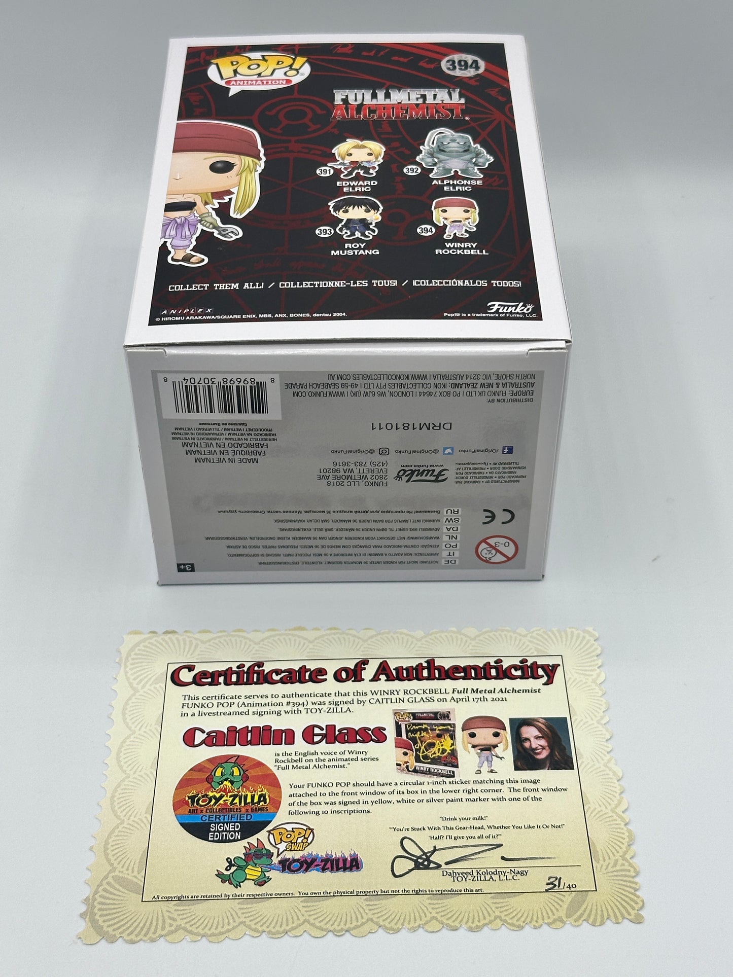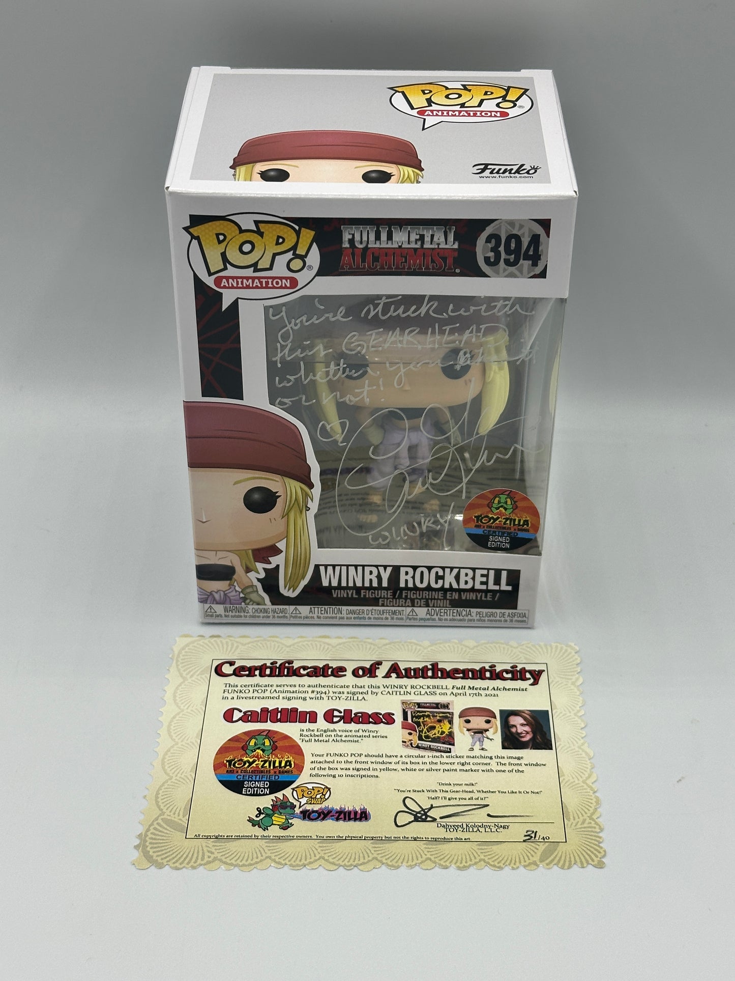 Winry Rockbell Funko Pop Mint #394 FullMetal Alchemist Signed Caitlin Glass Rare + POP PROTECTOR
